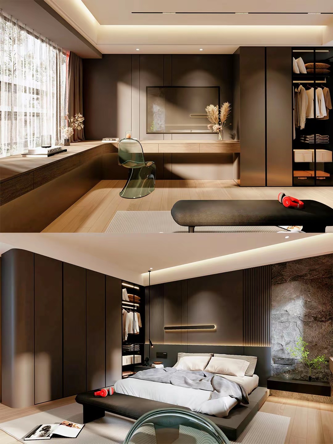 當下隨著人們生活水平得不斷提高,對臥室的設(shè)計要求也越來越高,從之前的臥室衣柜、背景、電視柜、軟裝.....一系列的東拼西湊,到現(xiàn)在的全案設(shè)計全案定制能實現(xiàn)真正風格及用料上的統(tǒng)一和把控一切只為整體效果功能多樣風格統(tǒng)一一切只為整體效果