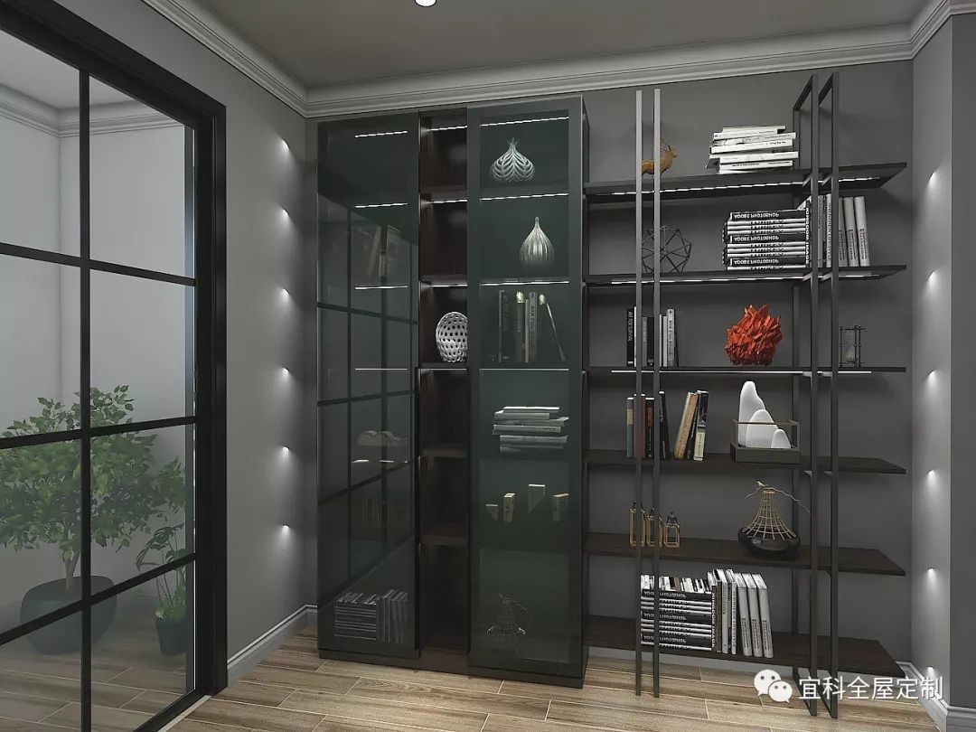 宜科的這款摩柯黑森系展示架,以金屬元素做主結(jié)構(gòu),摩柯木質(zhì)擱板為框架,部分區(qū)域以灰玻柜門為遮擋,工業(yè)風(fēng)的冷峻、硬朗,油然而生出一種理性的秩序感。