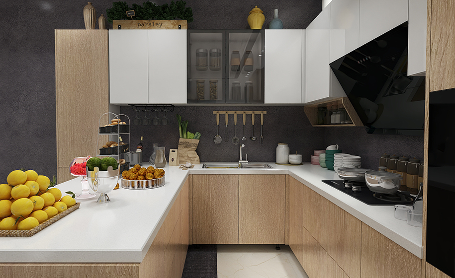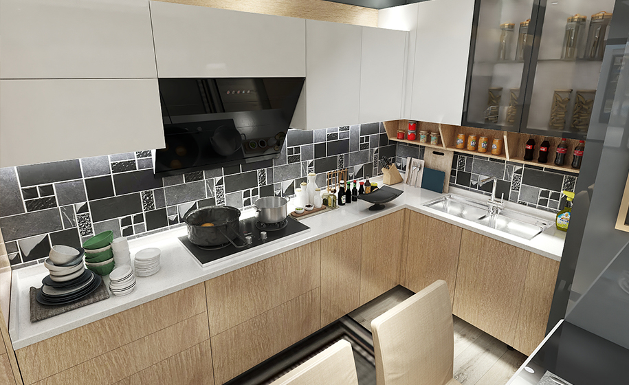 櫥柜作為存放廚具、做飯的操作平臺,其設計在顧及美觀的同時還要考慮主人的使用習慣。以便達到在實用的基礎上實現(xiàn)美觀。