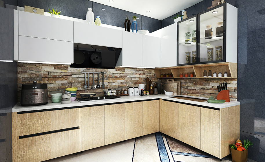 原木色治愈又溫暖,而白色給人安靜、清潔之感,原木色與白色的經(jīng)典搭配,給人一種清新、自然的既視感,整體營造出美好、舒適的烹飪空間。