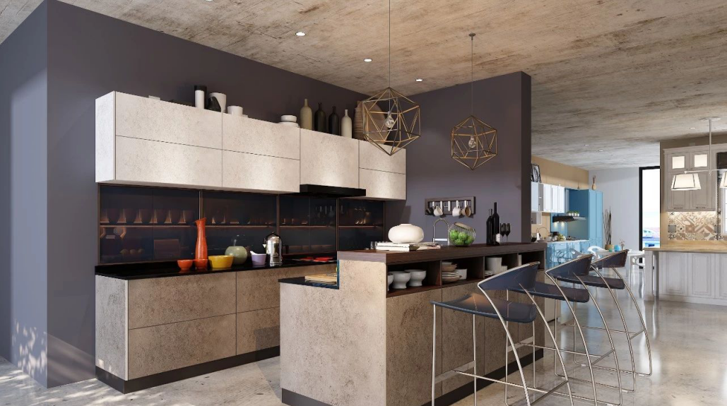 這是一種較為中性的色彩,并且也是搭配多彩柜體的絕佳選擇,它能將明暗柜有效的結(jié)合在一起,柔和的灰色臺面看上去和混凝土很像,同時(shí)也不太容易臟,容易清潔,是非常不錯(cuò)的一種色彩。