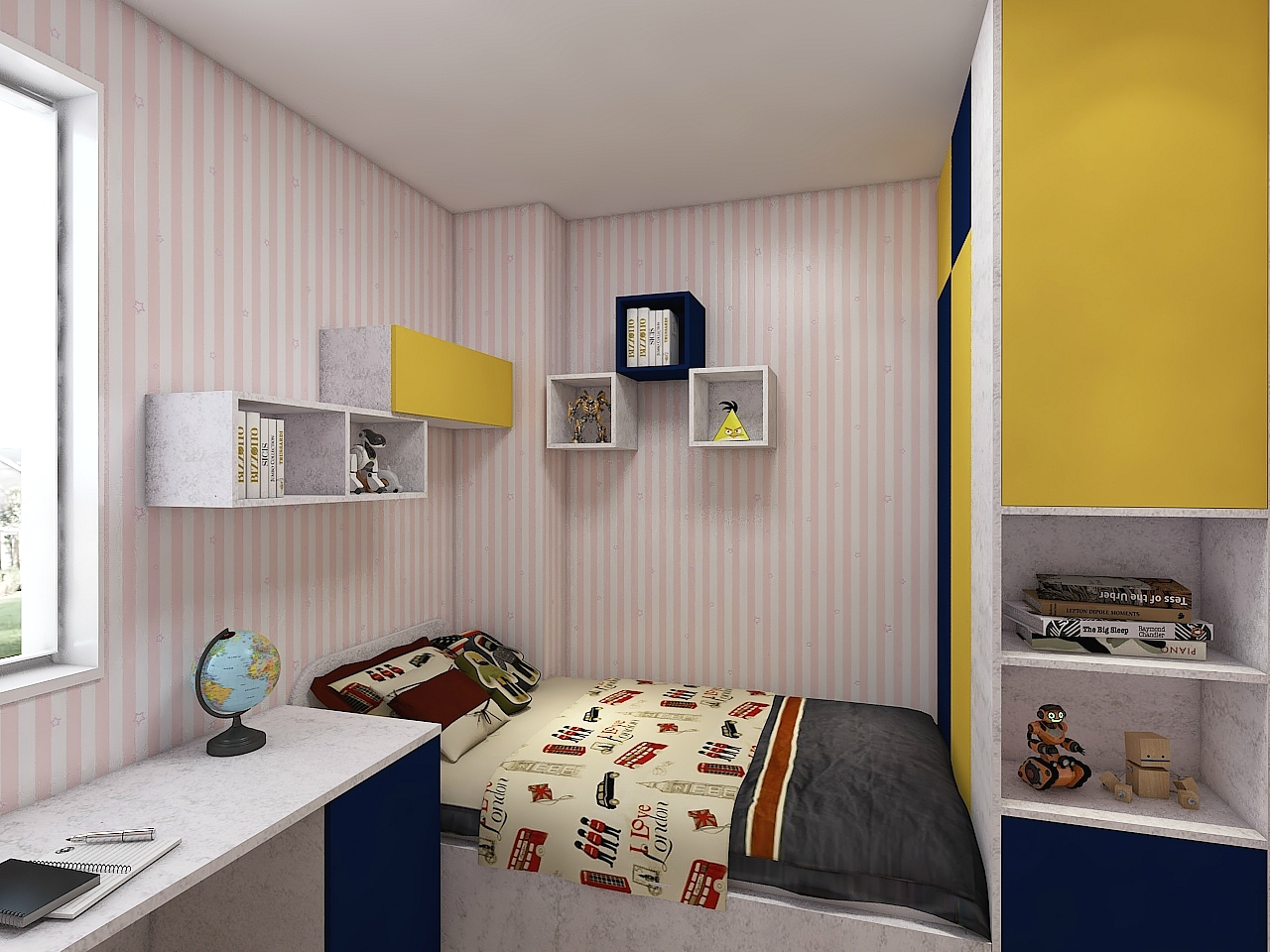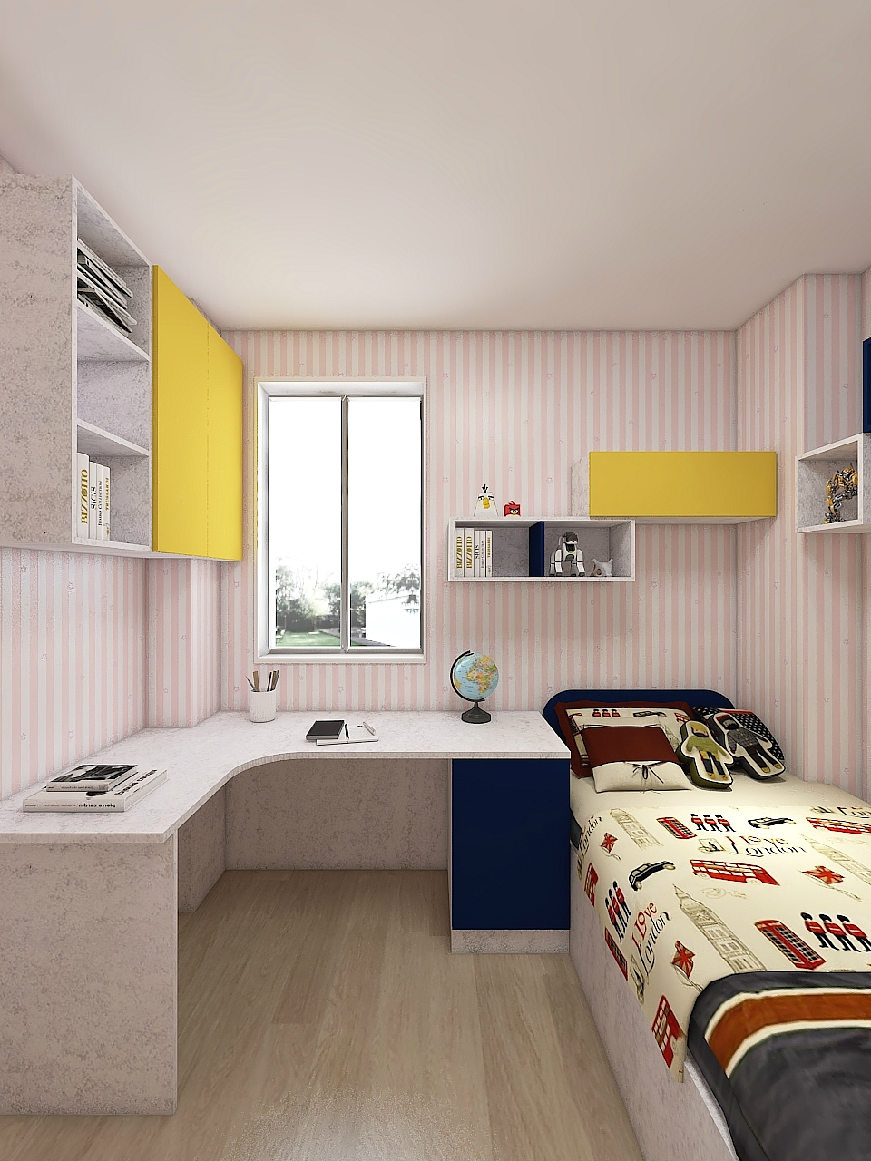 孩子的房間,學(xué)習(xí)環(huán)境至關(guān)重要,不是隨便的一桌一椅就能簡單應(yīng)付的。依墻而設(shè)的L型書桌,將傳統(tǒng)的桌柜一體的設(shè)計(jì)簡化成吧臺(tái)式。既完美利用了邊角死區(qū),又不會(huì)給人空間上的壓抑感。