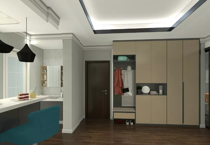 入戶是連接室內(nèi)與室外的橋梁,在入戶處打造一個高柜,方便存放鞋子、外套、鑰匙、手提包等,這樣可以把雜物統(tǒng)統(tǒng)隱藏起來,還入戶一個清爽環(huán)境。