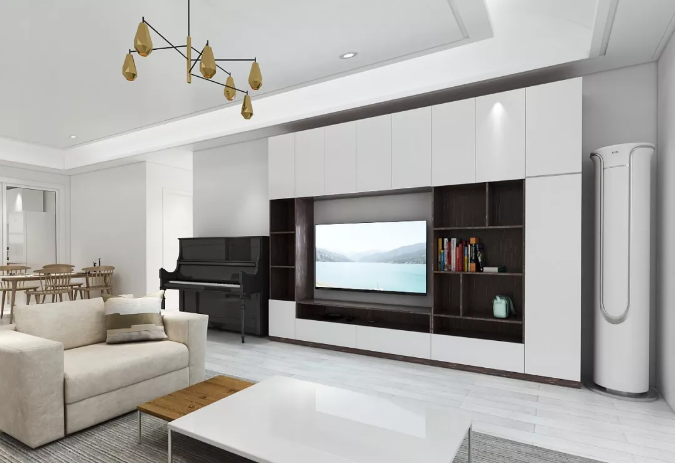 不妨做個滿墻的電視柜,既大氣美觀,還能增加收納空間。